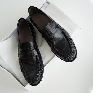 复古时尚手工褶皱乐福鞋2025春新款英伦风皮鞋女鳗鱼皮平底单鞋子