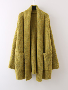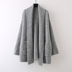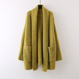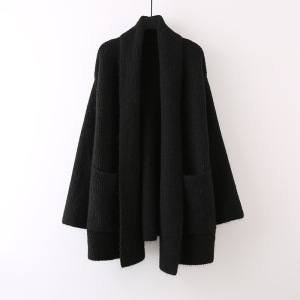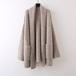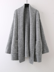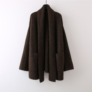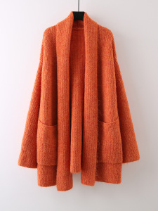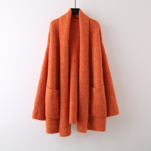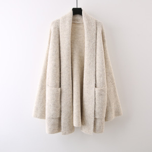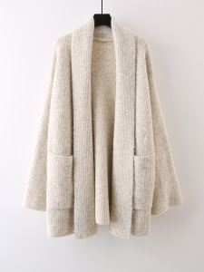 中长款纯色口袋针织软糯开衫女2025新款宽松慵懒风高级感外套毛衣