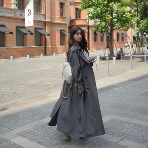 高个子超长灰色风衣春秋女款2025新款加长版脚踝大衣气质休闲外套