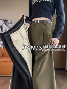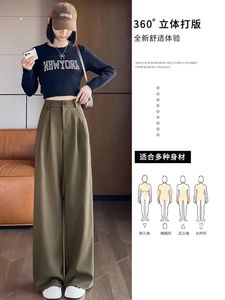 咖色西装裤女秋冬气质高腰垂感拖地宽松休闲小个子拖地直筒阔腿裤