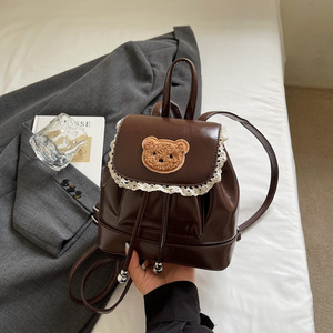 韩版新款ins潮时尚双肩包女小众芭蕾风复古小熊蕾丝边大容量背包