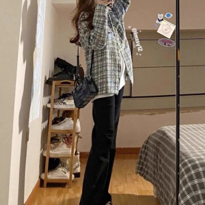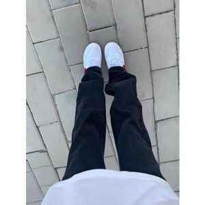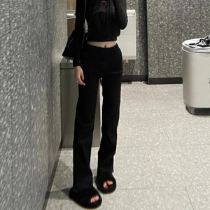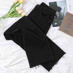 美式高街窄版直筒黑色牛仔裤女高腰弹力宽松显瘦小个子烟管堆堆裤