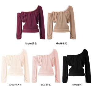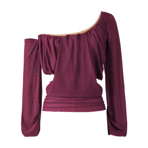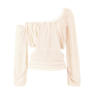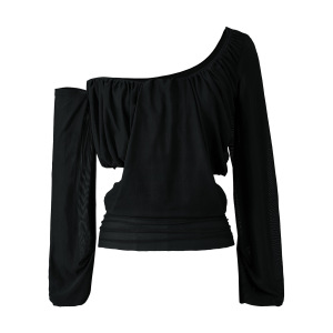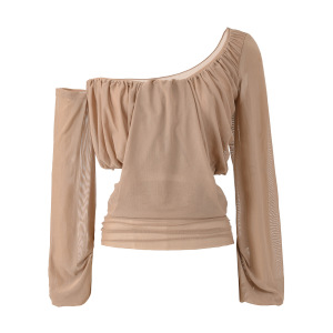 美式辣妹网纱斜肩上衣女春夏秋新款小众设计感独特别致露腰长袖T