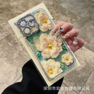 绿底山茶花【KK扭边钻框 点钻气囊款 精孔自带闪粉镜头膜】