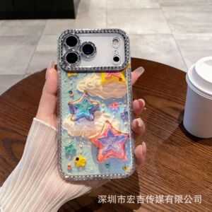 彩色云朵星星【KK扭边钻框 点钻气囊款 精孔自带闪粉镜头膜】