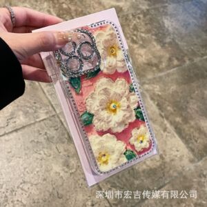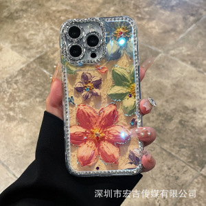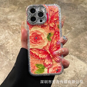 新款闪钻边框适用iPhone17ProMax手机壳油画16蓝光15全包14高级感