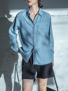 天丝防晒牛仔衬衣女宽松显瘦夏季凉感复古衬衫上衣