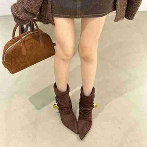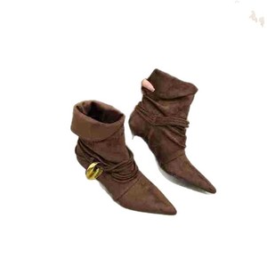 复古尖头短筒靴女款2025新款秋季百搭废土风西部牛仔靴粗跟堆堆靴