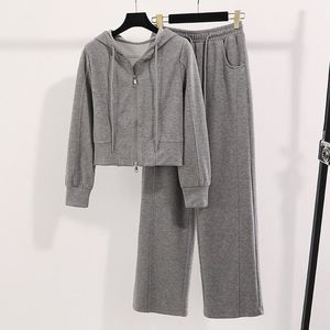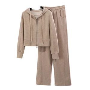 新品感休闲运动套装女春秋新款显瘦连帽卫衣直筒裤两件套纯色2025