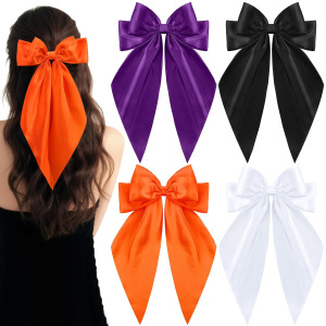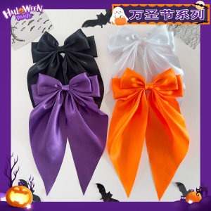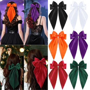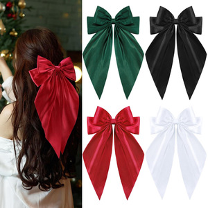 跨境爆款大蝴蝶结飘带发夹弹簧夹纯色后脑勺发卡女节日氛围感发饰