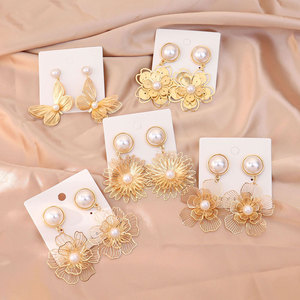 夸张镂空立体花朵耳坠ins风设计感派对吸睛轻奢蝴蝶耳环跨境货源