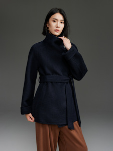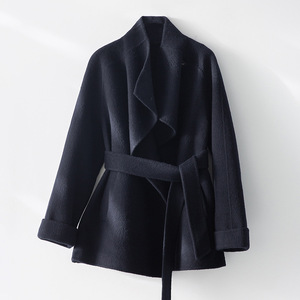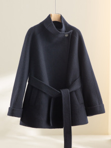 抗静电真丝双面羊毛羊绒大衣女高级感系带宽松中长款毛呢外套秋冬