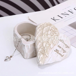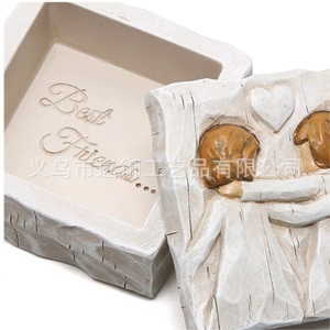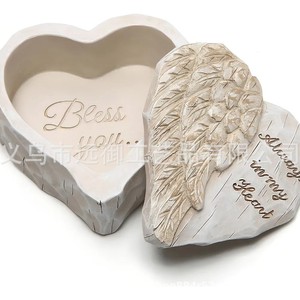 外贸跨境爱心雕刻手绘纪念品盒礼物树脂工艺品装饰情侣收纳盒摆件