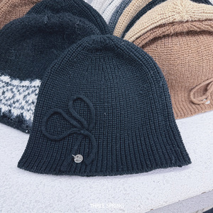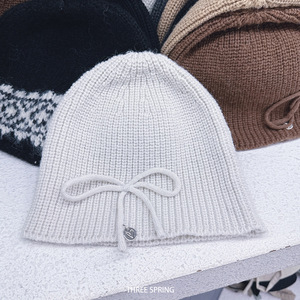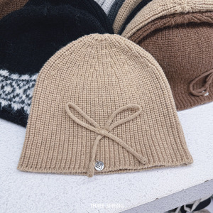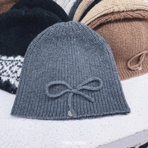 批发韩国2025年早秋新款简约纯色蝴蝶结针织帽大头围显脸小毛线帽