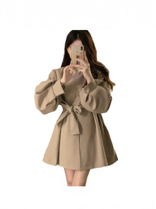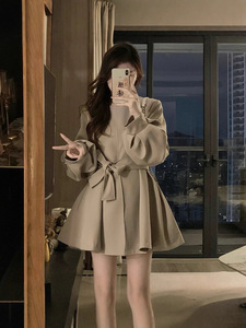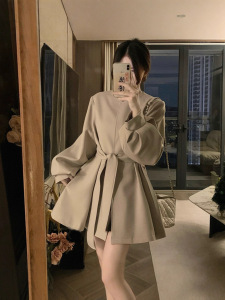 气质圆领系带风衣外套女中长款2025秋季新款大衣风衣外套女潮
