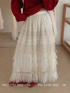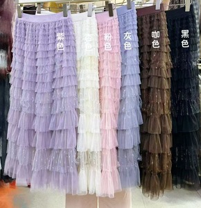 仙气重工紫渐变网纱蛋糕裙半身裙女秋长款设计感显瘦大摆长裙6色