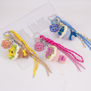 教师节毛线钩织花束包挂件向日葵钥匙扣miu系编织绳挂饰小礼品批