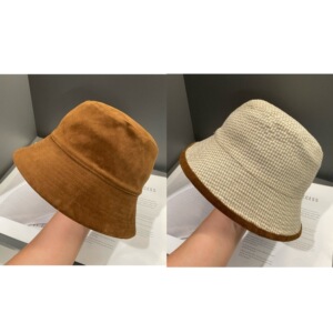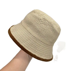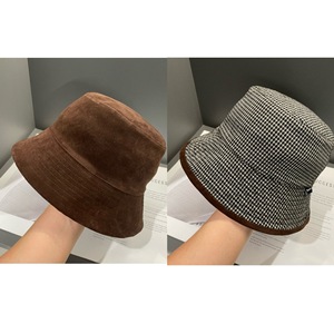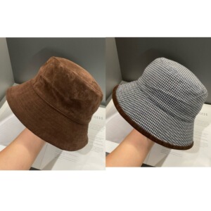 批发韩国2025年早秋新款锁边格纹双面可戴渔夫帽日系遮阳防晒盆帽