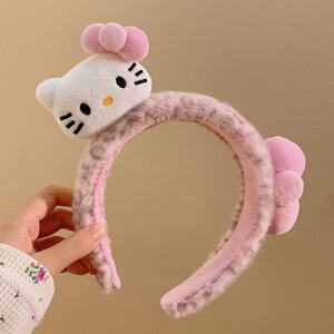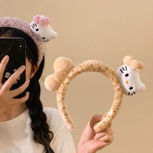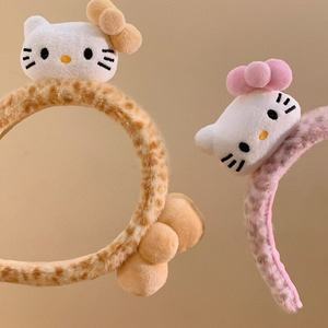 粉色豹纹Kitty蝴蝶结海绵毛绒发箍女可爱百搭头箍洗脸发卡高颅顶