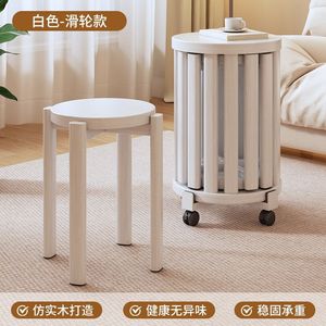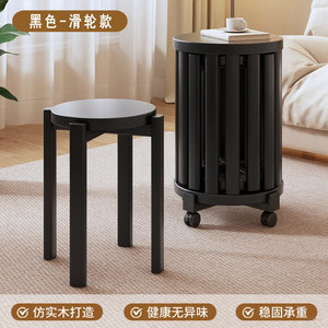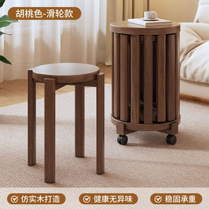 实木可叠放组合茶几客厅家用叠叠乐凳子圆凳餐桌带滑轮椅子小凳子
