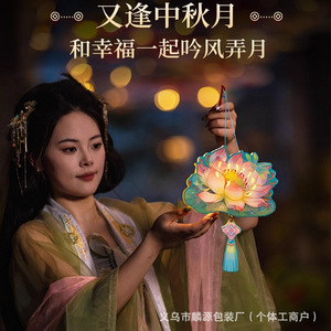 2025新款中秋节灯笼手提儿童手工diy发光户外挂饰古风小兔子花灯