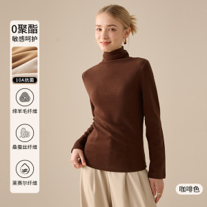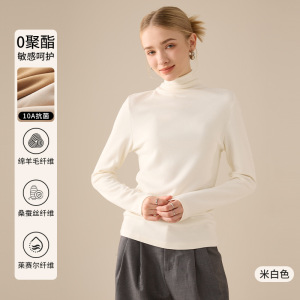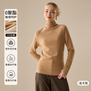 羊毛蚕丝堆堆领打底衫女2025新款秋冬德绒加绒加厚保暖内搭上衣