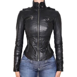 街头机车风炫酷皮衣收腰夹克黑色显瘦翻领皮革拼接拉链外套女批发
