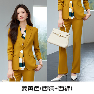 姜黄色西装+裤子+丝巾