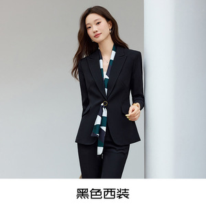 黑色西装+裤子+丝巾