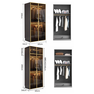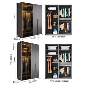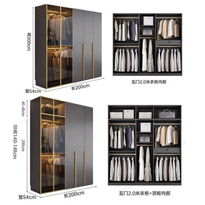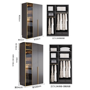轻奢实木玻璃门衣柜家用卧室客厅连书桌一体现代简约四五门大衣橱