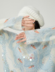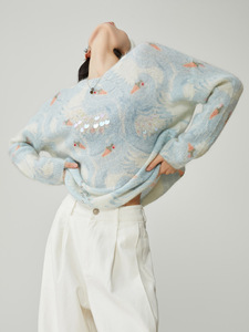 Feiry 温柔风亮片钉珠长袖针织衫女薄款2025秋季新款宽松慵懒毛衣