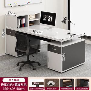 ★☆【单人桌椅-加高左柜】云溪白+铁灰 155★☆