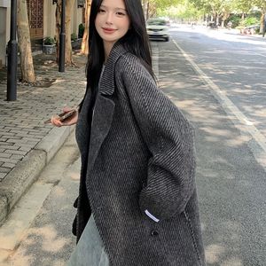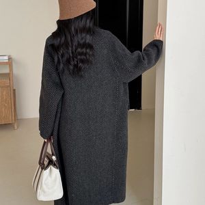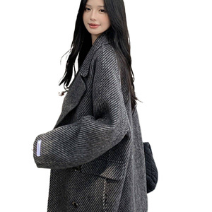 斜纹西装双面羊绒大衣女赫本风羊毛高级感人字纹秋冬宽松毛呢外套