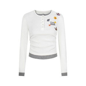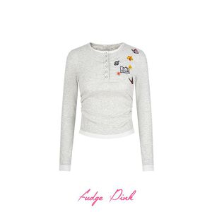 Fudge Pink 25秋季New实拍美式复古辣妹修身假两件长袖T恤