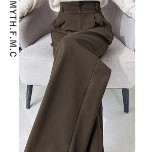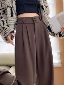 毛呢西装裤女秋冬季新款高腰显瘦加绒垂感窄版小个子直筒阔腿裤女