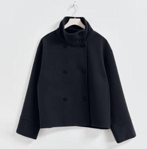 欧美跨境2025秋冬女装女式夹克气质优雅立领排扣短款宽松呢子外套
