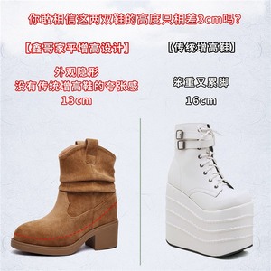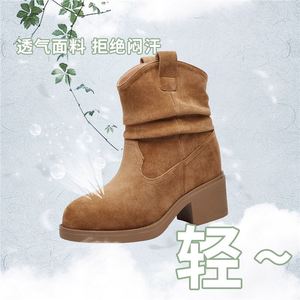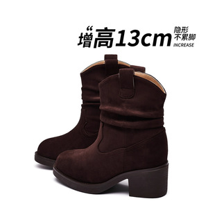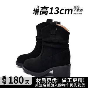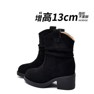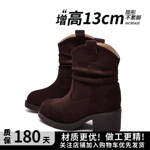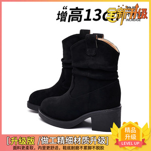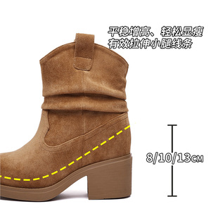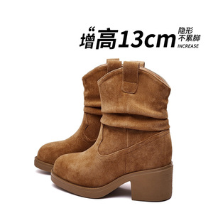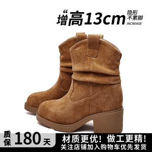 增高13厘米中筒靴高跟堆堆靴子女2025年新款粗跟美拉德短靴西部靴