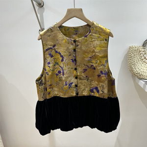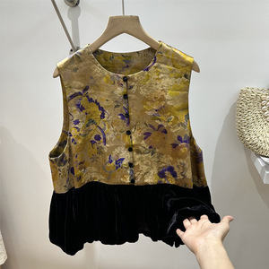 国风香云纱马甲女无袖上衣2025秋季新款新中式荷叶边背心马夹衬衫