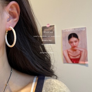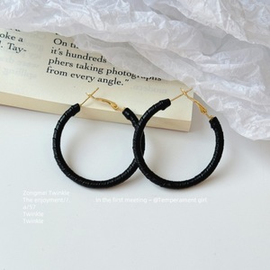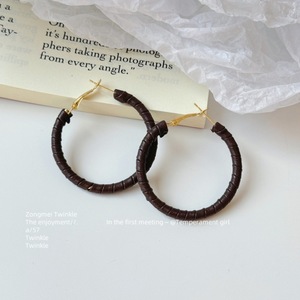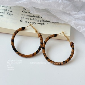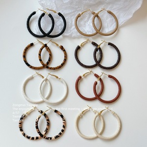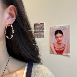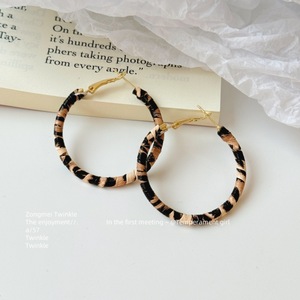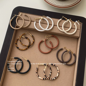 【极细简约】经典皮革PU复古港风豹纹圈圈耳环女通勤轻奢气质耳饰