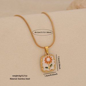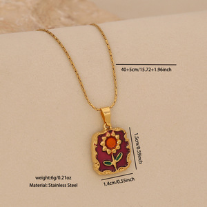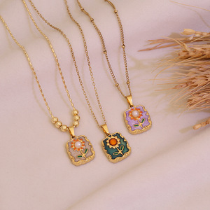 【冰萌】复古滴油向日葵吊坠项链轻奢不锈钢锁骨链跨境项饰N1645