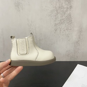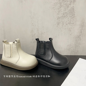 小童时尚字母休闲风中筒小皮靴2025秋冬新品女童简约真皮加绒短靴