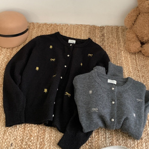 高级灰蝴蝶结刺绣针织外套浙江普院毛衣桐乡高端嘉兴濮院羊毛开衫