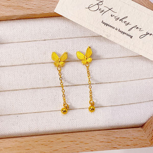 古法沙金拉丝蝴蝶长流苏耳钉 金店同时尚轻奢蝶影仙踪耳坠高保色