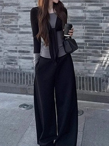 时髦套组 假两件长袖tee/空气层宽腰针织裤