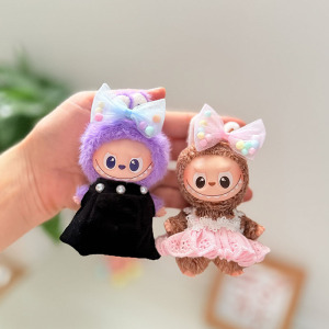 LABUBU4.0心底密码搪胶毛绒挂件小鼻噶公仔衣服珍珠连衣裙背带裙