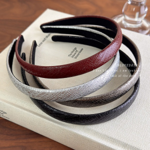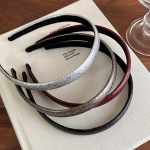 早秋新款复古红色皮质发箍细款增高颅顶头箍外出百搭压发头箍发卡