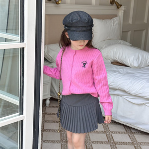 艾摩贝贝儿童秋季保暖绞花毛衣女童休闲洋气针织麻花开衫外套上衣