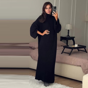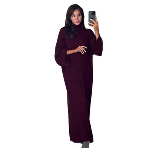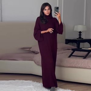 2025秋季新款欧美亚马逊跨境外贸女装高领宽松休闲条纹针织连衣裙