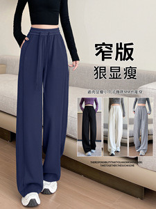 窄版阔腿裤女2025新款春秋季小个子灰色卫裤宽松直筒休闲运动裤