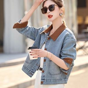 复古撞色牛仔外套短款拼接2025春秋新款感小个子洋气夹克上衣